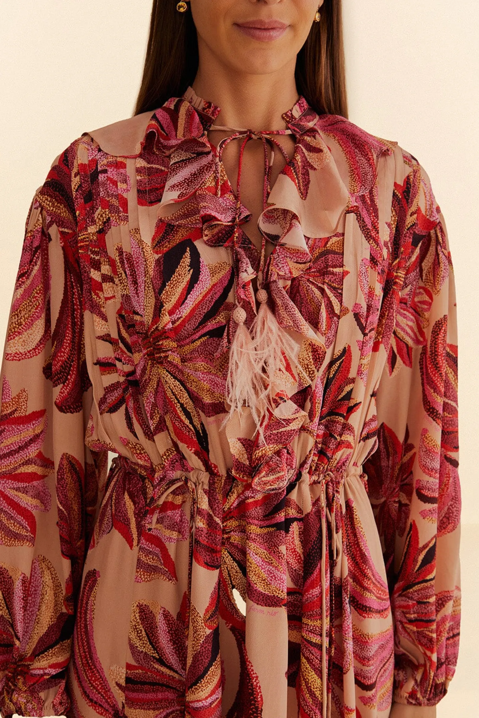 Keeping up with your festive agenda will feel the easiest with the Floral Tapestry V Neck Maxi Dress. This elegant staple features a flowy, ruched shape, a flowerful print, and tassels that will make you stand out — whether you’re wearing this outstanding piece as awedding guest dressor every other kind of fancy gathering.